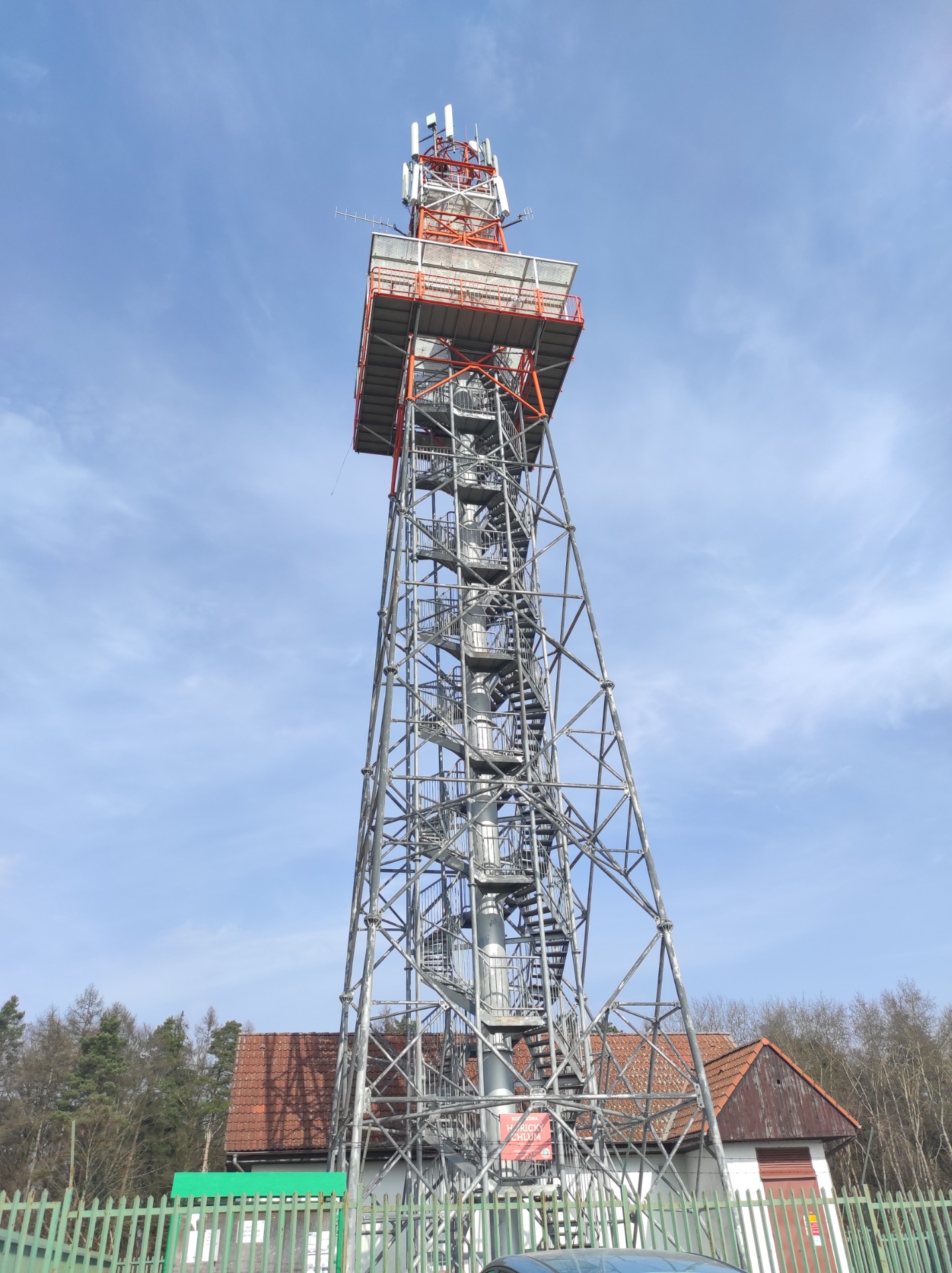 Rozhledna Hořický Chlum je vysoká 41,54 metru a vedou na ni dvě nezávislá schodiště, z nichž každé má 142 schodů. Na vrchol jsme se ale nepodívali, protože rozhledna je otevřená až od května. Věřím však, že je z ní krásný výhled, a určitě se sem ještě vrátíme, až bude otevřená.