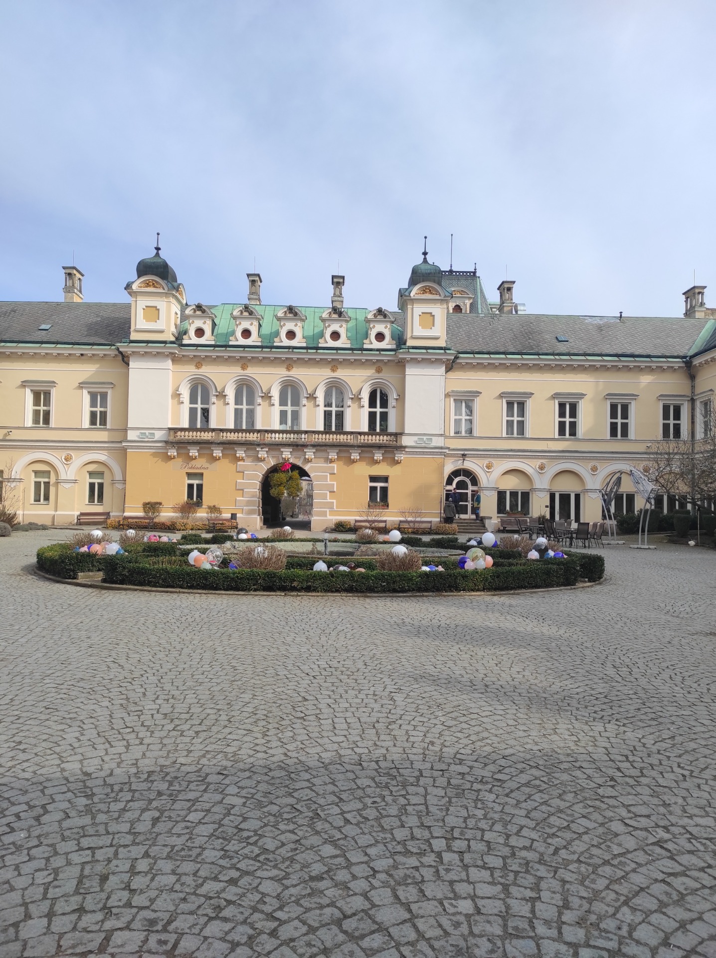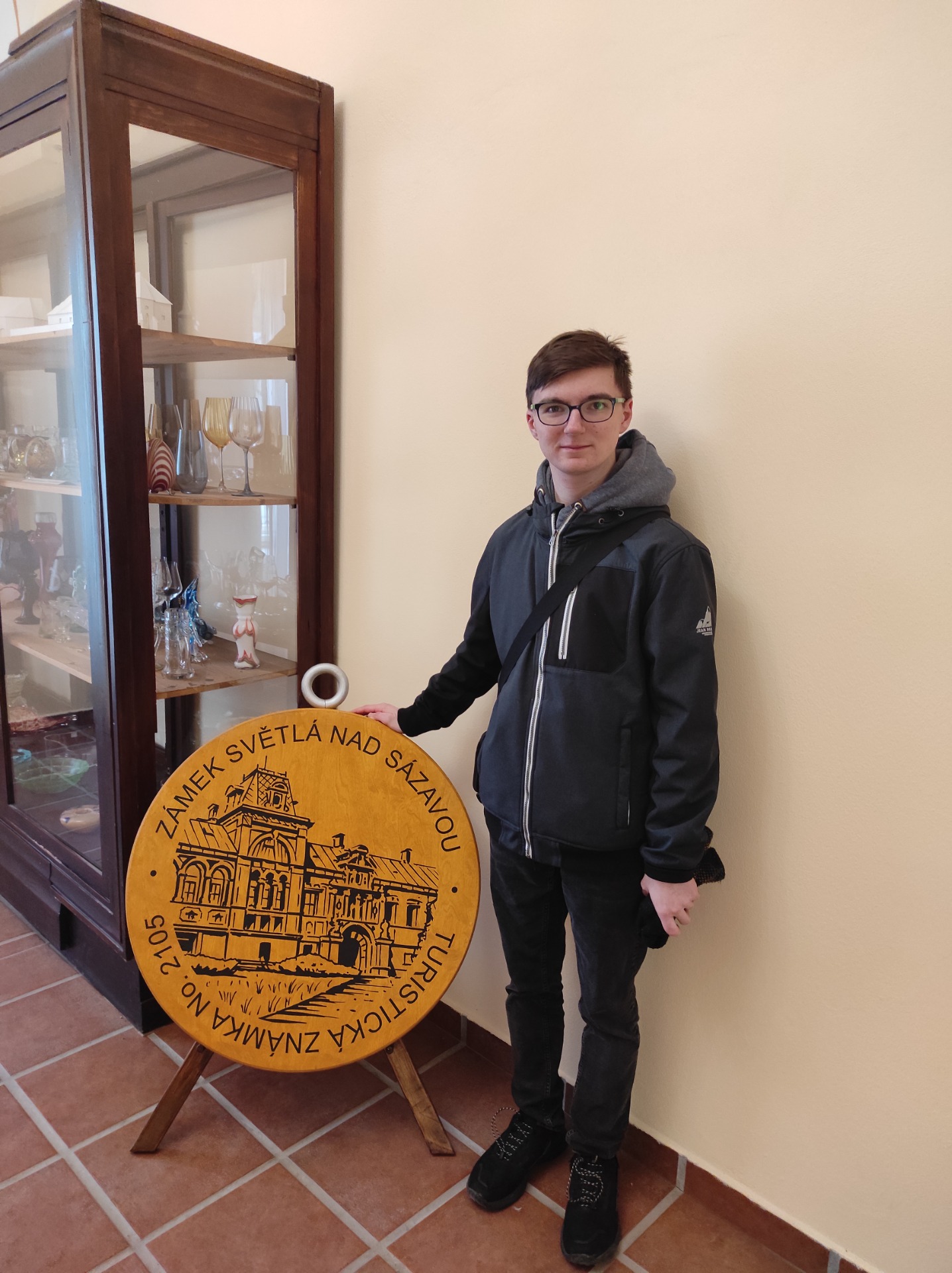 Po procházce městem jsme se s tátou vydali na zámek, kde jsme navštívili expozici turistických známek. V této expozici je vystavena největší soukromá sbírka turistických známek sběratele Pavla Zabystrzana, která byla po jeho odchodu do "sběratelského nebe" zachována právě zde.