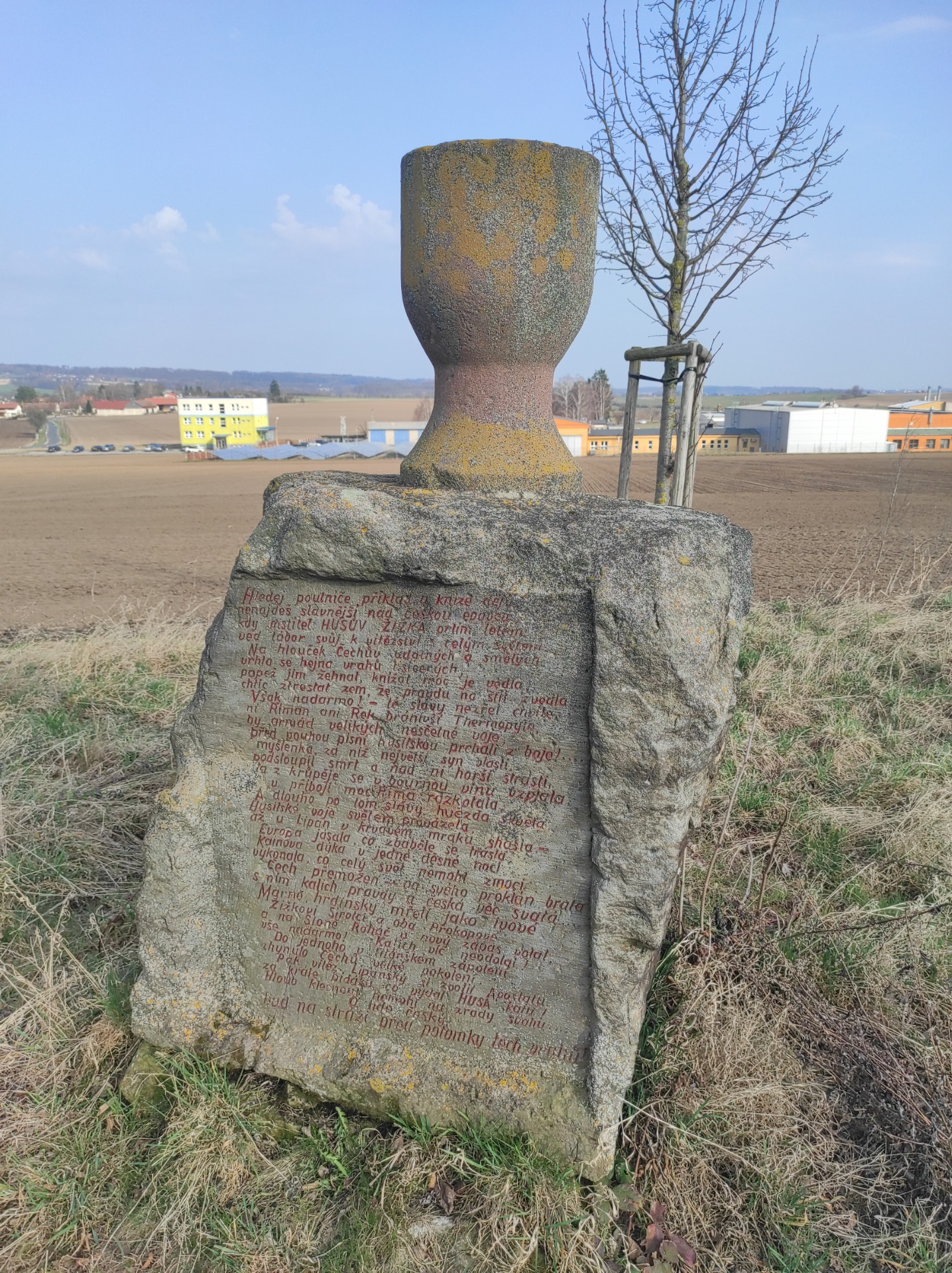 Kromě mohyly se zde nachází také pomník s kalichem, na kterém jsou vyryty verše od Antonína Šešiny.