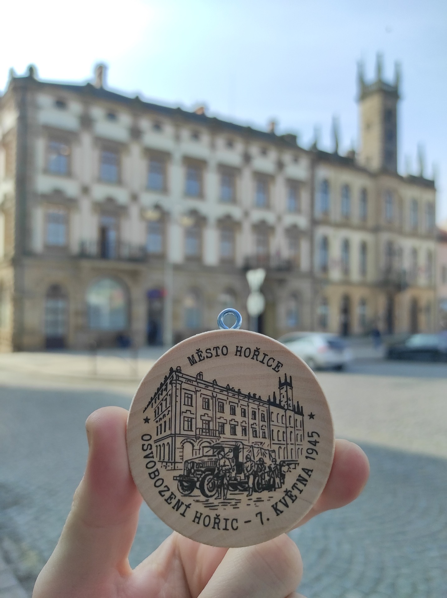 Na náměstí jsem měl ještě jednu známku k nafocení – speciální edici k 80. výročí konce druhé světové války, na které je vyobrazena hořická radnice.